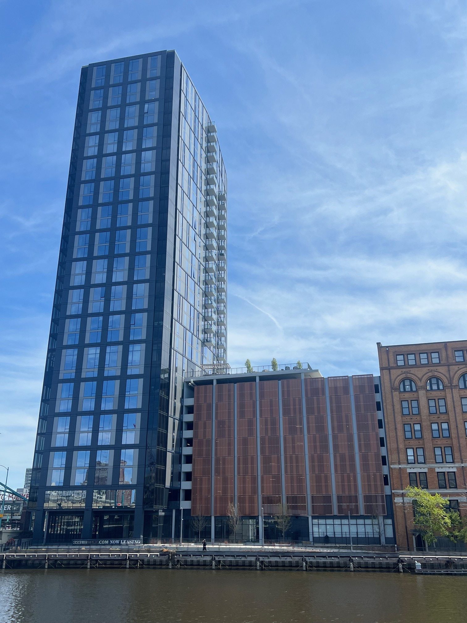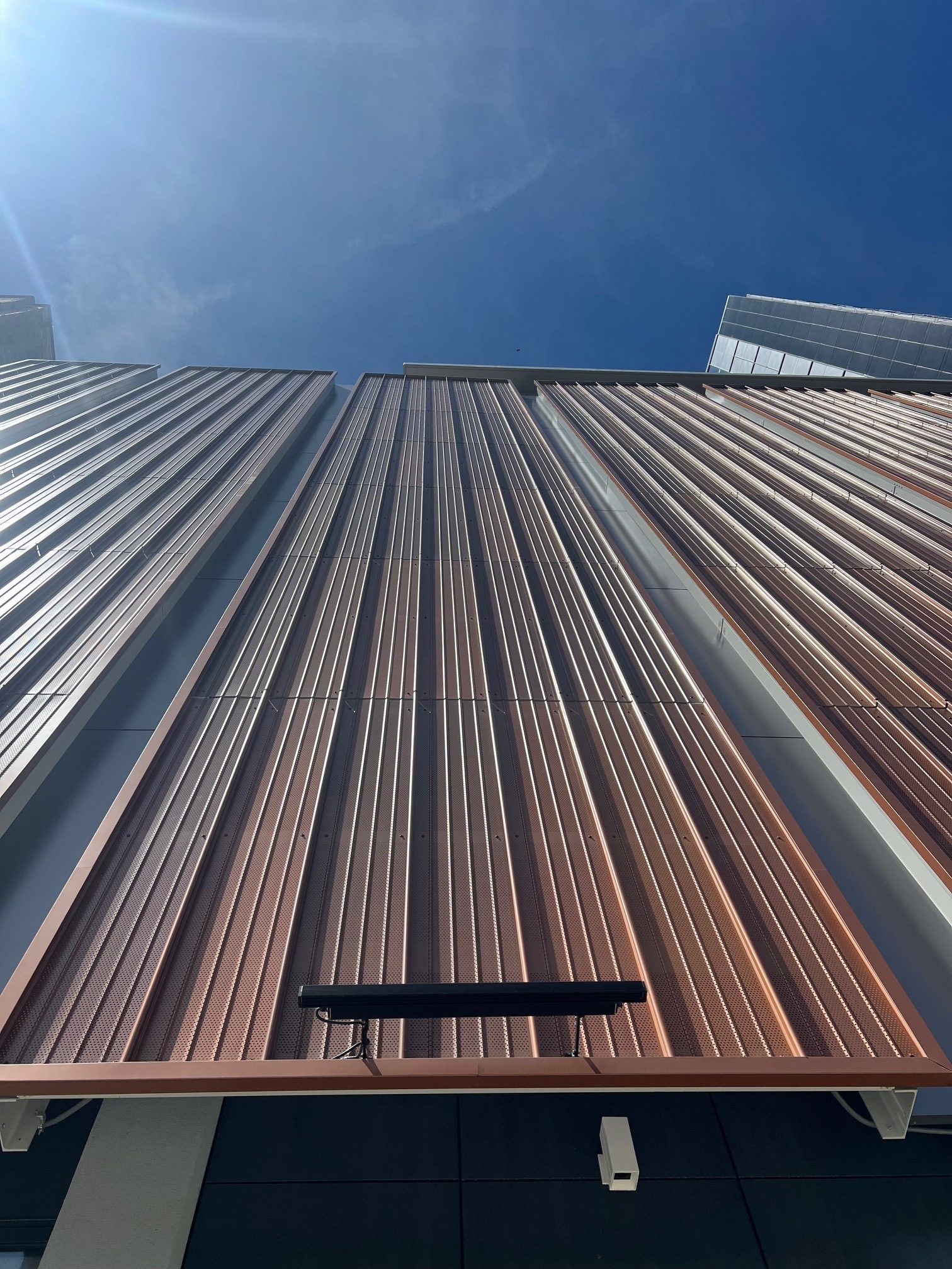 This parking garage showcases 18,700 square feet of multi-colored perforated Kalzip wall panels, along with Reynobond ACM Panels.